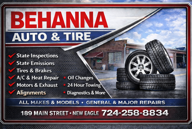 Full service auto repair shop with PA state inspection and emissions. Two Locations: 932 Main Street Bentleyville, Pa 15314 5 Todd Avenue Ellsworth, Pa 15331 [read more]
